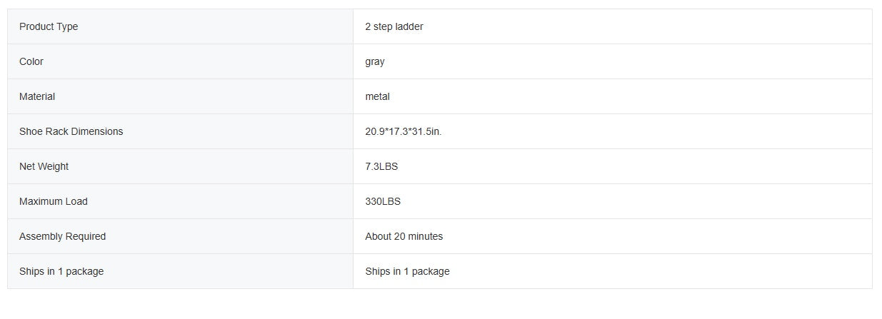 With assembled dimensions of 20.9" × 17.3" × 31.5", this step ladder provides the ideal height boost for various household tasks. Whether you're changing light bulbs, reaching high shelves, accessing storage areas, or tending to elevated garden plants, this ladder offers the perfect combination of height and stability.