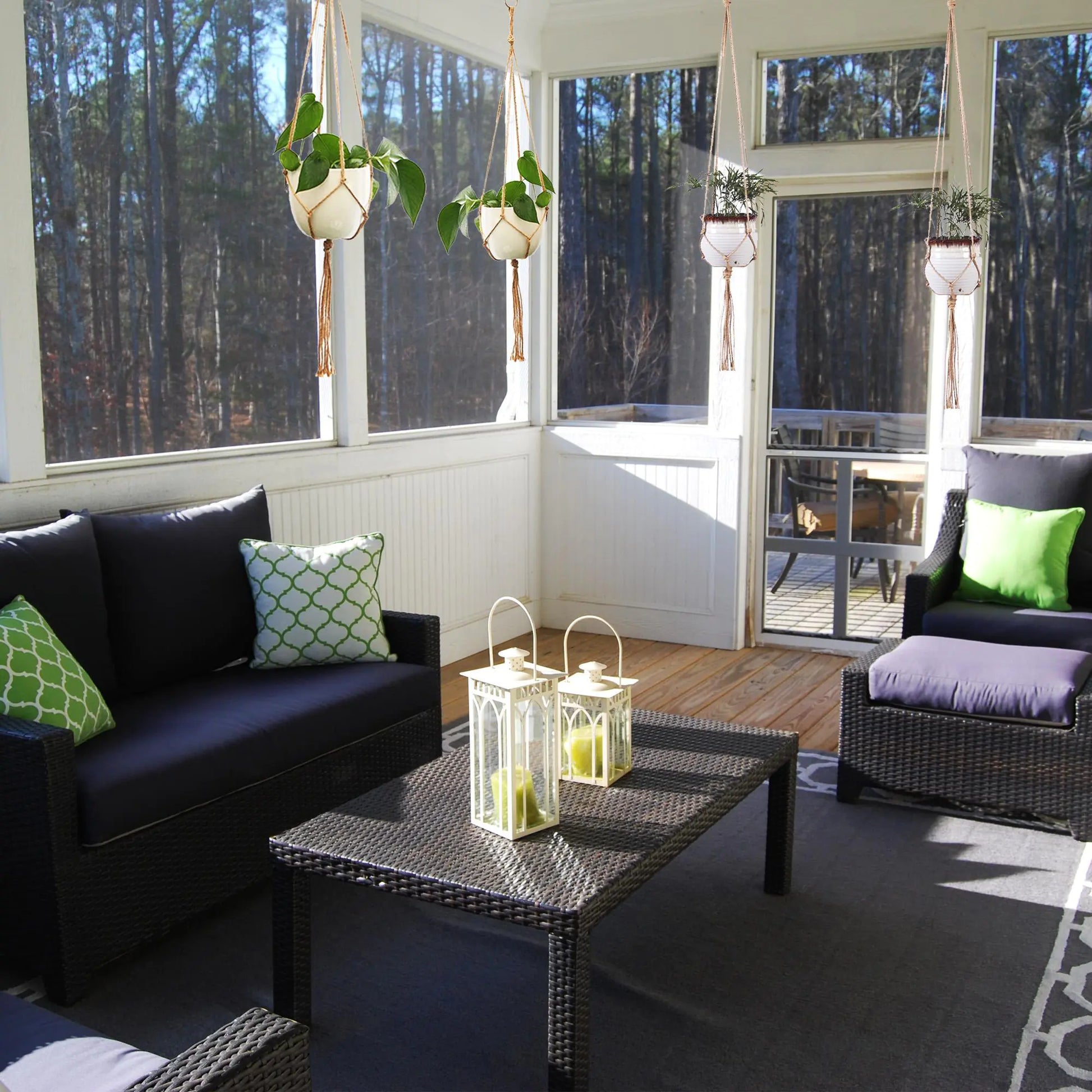 4 Pack Macrame Plant Hanger has customized design and natural beige color. Creates lovely, geometric and modern shaped home decor. It's ideal for display your beautiful plant and vases during housewarming, birthday, wedding, Christmas.