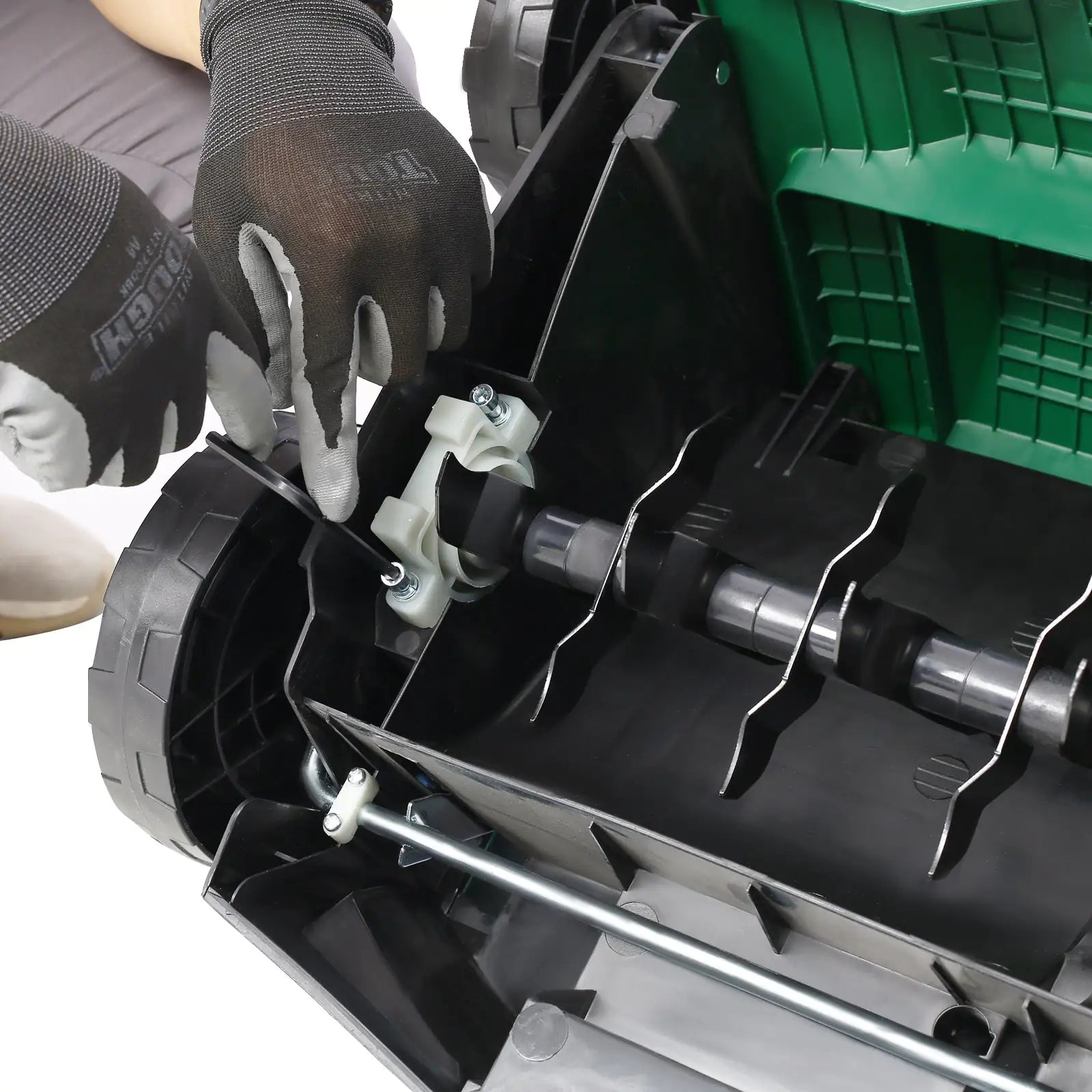 Built with robust metal construction and finished in an attractive green color, this scarifier is engineered for durability and long-lasting performance. The heavy-duty metal frame ensures reliable operation even in challenging conditions, while the professional-grade components deliver consistent results season after season.